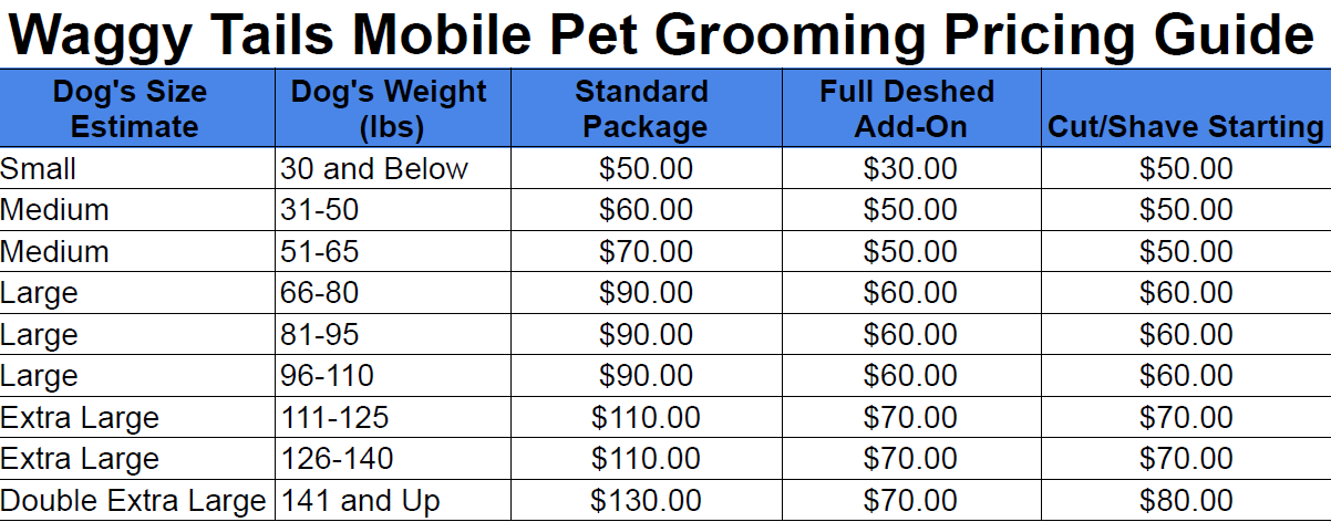 Due to certain dogs' needs, additional charges may be applied at the discretion of the groomer.
